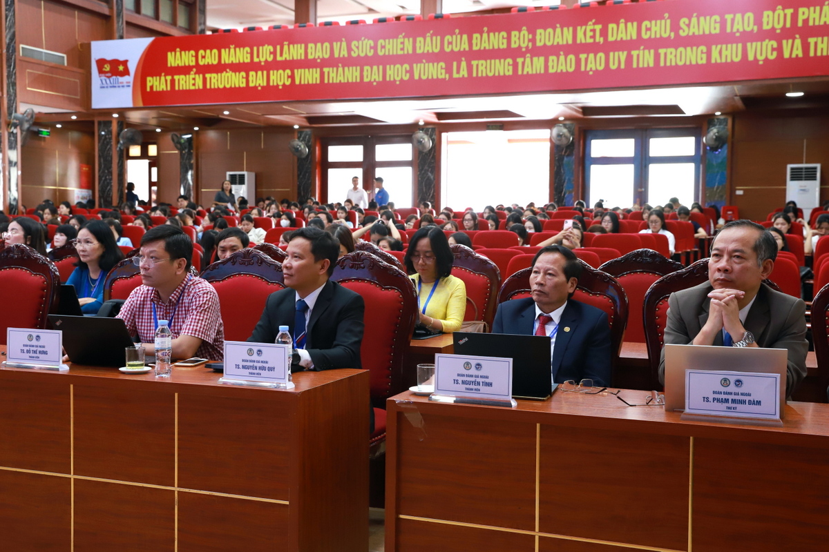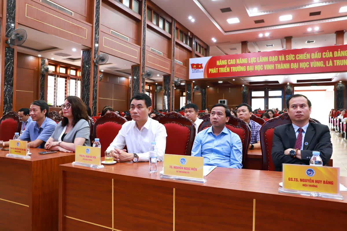 Về phía Trường Đại học Vinh, tham dự có TS. Nguyễn Ngọc Hiền – Bí thư Đảng ủy; GS.TS. Nguyễn Huy Bằng – Hiệu trưởng, Chủ tịch Hội đồng Khoa học và Đào tạo; PGS.TS. Trần Bá Tiến và PGS.TS. Nguyễn Thị Thu Cúc – Phó Hiệu trưởng, cùng đại diện Đảng ủy, Hội đồng trường, các Hội đồng chuyên môn, lãnh đạo các đơn vị, giảng viên, viên chức và người học.